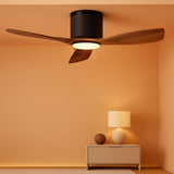 Walnut Energy Efficient Ceiling Fan With LED 52" Sophisticated comfort in a compact design. This 52-inch walnut ceiling fan combines whisper-quiet DC motor technology with adaptive LED lighting—18W with three color temperatures and dimming levels. Six-speed control and reversible airflow handle year-round climate needs, while the flush-mount profile fits seamlessly into any room. Timer function, memory settings, and ultra-low noise (35 dB) create an effortless living experience. Two-year warranty included.