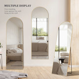 Arched Full-Length Mirror 64"×21" (Gold) Elevate your space with this sophisticated arched mirror featuring a generous 64"×21" reflective surface. The gold finish and curved silhouette deliver timeless elegance that complements any interior style. Constructed from durable aluminum alloy and shatter-proof glass, it offers reliable stability whether leaning, freestanding, or wall-mounted. Perfect for bedrooms, closets, bathrooms, or living areas—no assembly required.