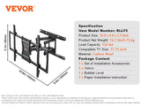 Heavy-duty carbon steel construction with a matte finish supports TVs up to 165 lbs. Full articulation delivers precise positioning: tilt ±5°/−15°, swivel ±3°, and rotate up to ±67.5°. Fits 37–90" displays with VESA compatibility up to 600×400 mm. Four adjustable arms extend 1.4"–22.4" from the wall, maximizing space efficiency. Includes installation template, bubble level, hardware, and cable management Velcro for a clean setup in under 30 minutes. Mounts securely to wood studs or concrete walls.