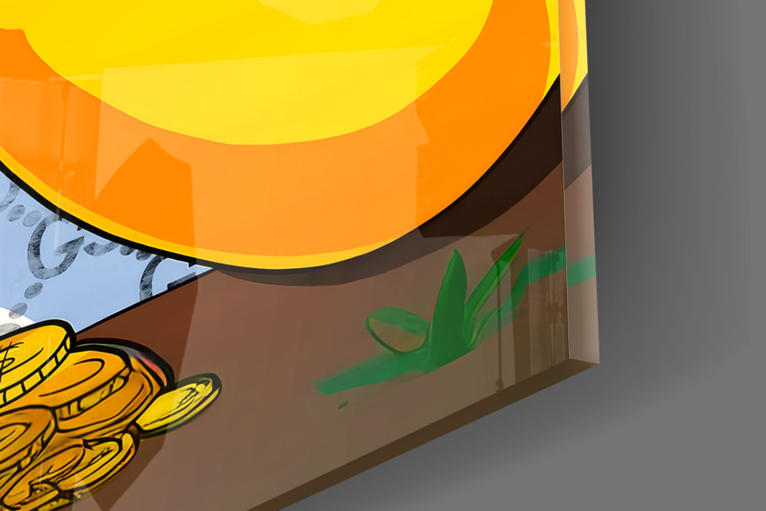 Homer The Taste of Greed Glass Wall Art brings gallery-quality sophistication to your space. This premium tempered glass piece features UV-resistant printing with crystal-clear detail and a glossy finish that adds depth and brilliance. Includes steel mounting hardware for seamless installation. Available in four sizes—from 28.5″ × 18″ to 55″ × 35″—to suit any wall. Durable, easy to maintain, and designed for discerning collectors who demand both artistry and craftsmanship.